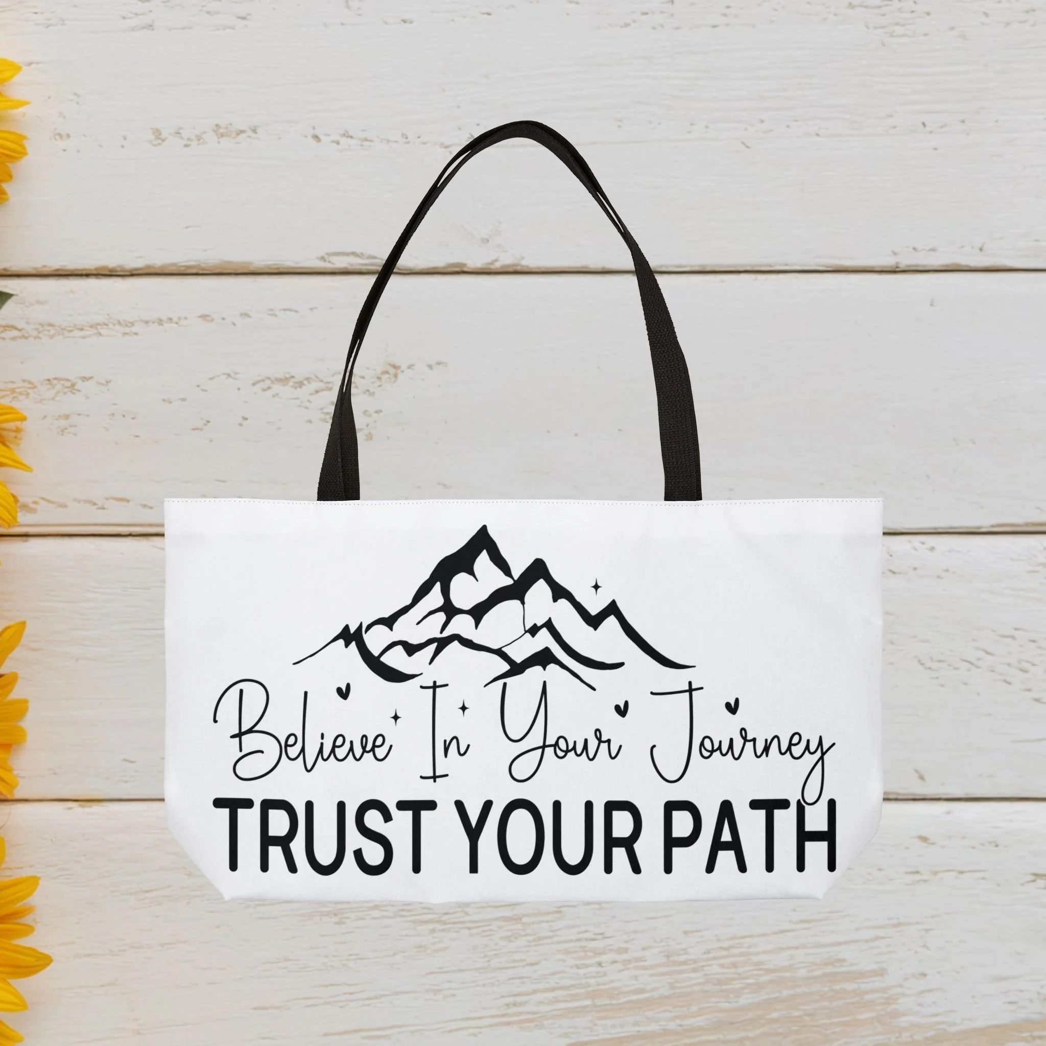 This personalized weekender bag comes in one size – 24" x 13" (60.9 cm x 33 cm) – perfect for those who love to travel light. Its t-bottom construction and black handles give it a sleek, classic look. Start designing, and we'll print your art on the 100% spun polyester in vibrant colors.